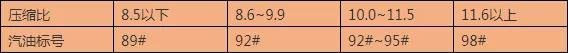 以下是不同区间的压缩比对应的应使用的汽油标号,仅供参考: