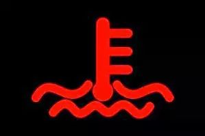 表示车辆发动机内冷却液的温度(蓝色代表水温低于正常行驶温度,此时不宜激烈驾驶;红色代表水温高于正常行驶温度,此时应停车并关闭发动机,否则会导致发动机高温,致使缸体变形,待冷却液恢复至正常温度后再继续行驶)。