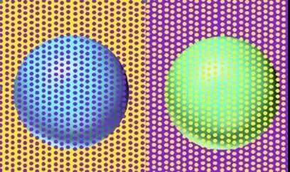 是不是不敢相信这是两个一样颜色的球?其实只不过是因为加了背景颜色、圆点的干扰,让视觉产生偏差,以至于你的眼睛让你产生“错觉”。