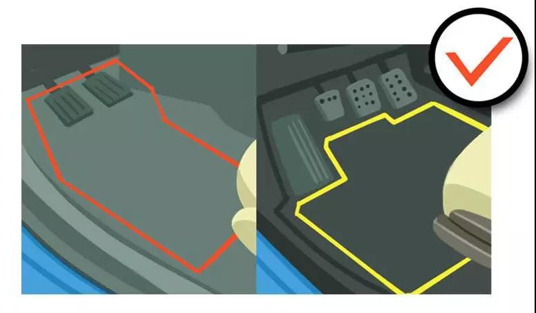 行车中可能会因为脚垫向前滑动,卡住刹车踏板,导致刹车踩不到底,引发安全事故。
