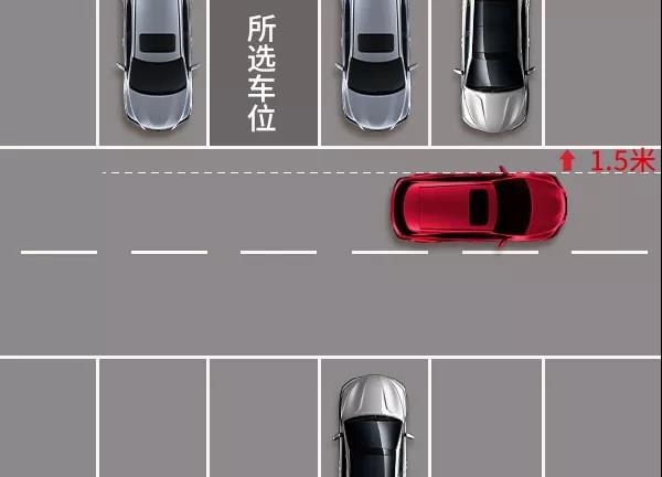 一、向前开出一个停车位的距离,并与车位线保持1.5米的间距。