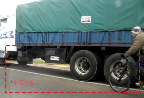 所谓内轮差是指车辆在转弯时,前内轮转弯半径跟后内轮转弯半径之差,这个区域是驾驶员视线的盲区。像卡车、货车这些车身较长的大型车,往往车头转过去了,车身还没完全转过来,内轮差盲区就会容易出事故。