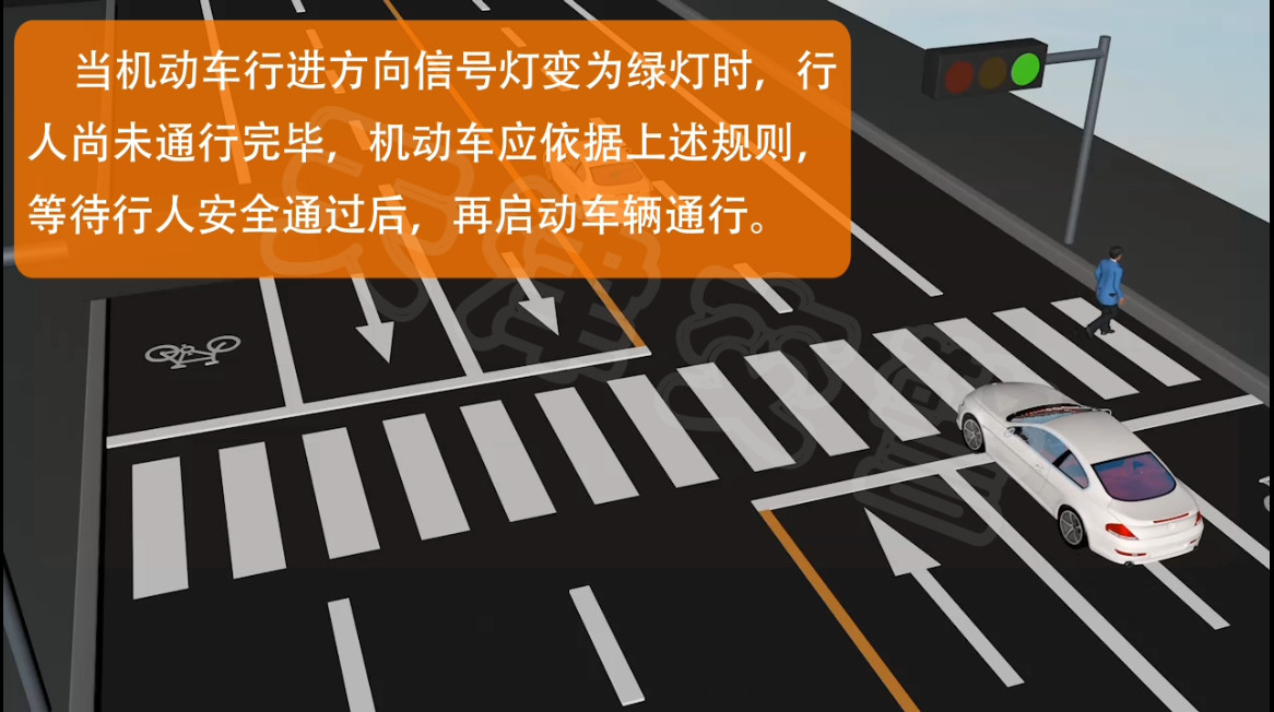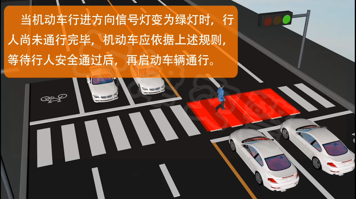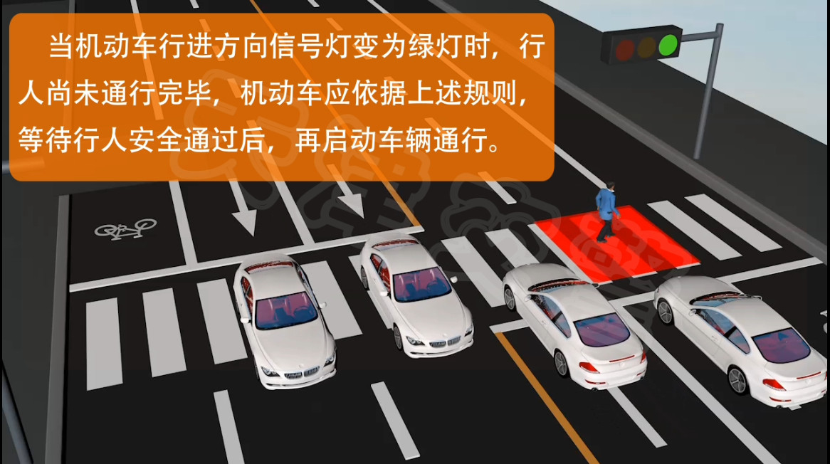 下面这种情况是行人没有完全通过路口就变了灯机动车应该怎样让行
