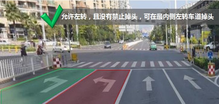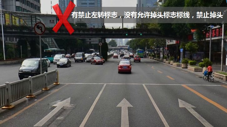 2.路口禁止左转或没有左转标志标线,且没有掉头标志标线时,不能掉头。