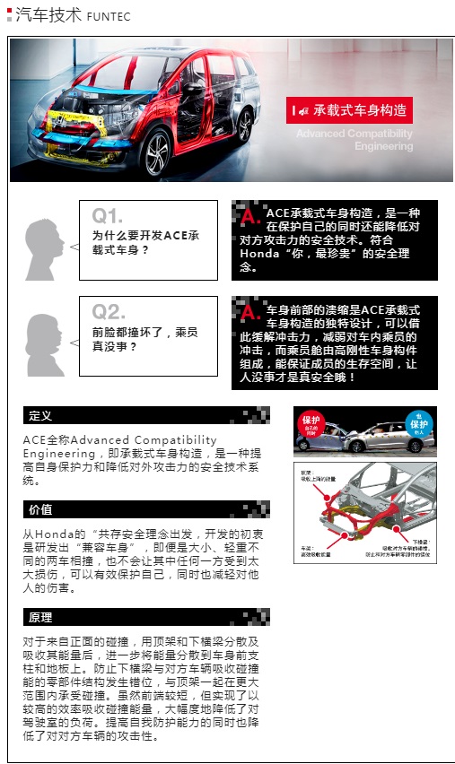 ACE承载式车身构造,是一种在保护自己的同时还能降低对对方攻击力的安全技术。符合Honda“你,最珍贵”的安全理念。