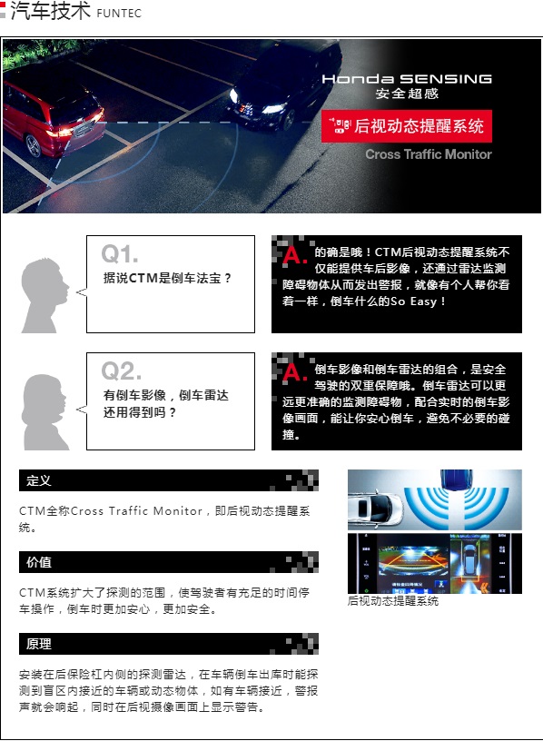 CTM系统扩大了探测的范围,使驾驶者有充足的时间停车操作,倒车时更加安心,更加安全。