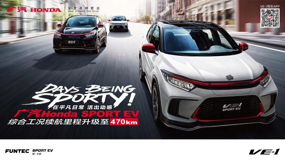 加速广汽本田电动化 锐·e动VE-1 全系升级长续航,新增VE-1 S 运动款