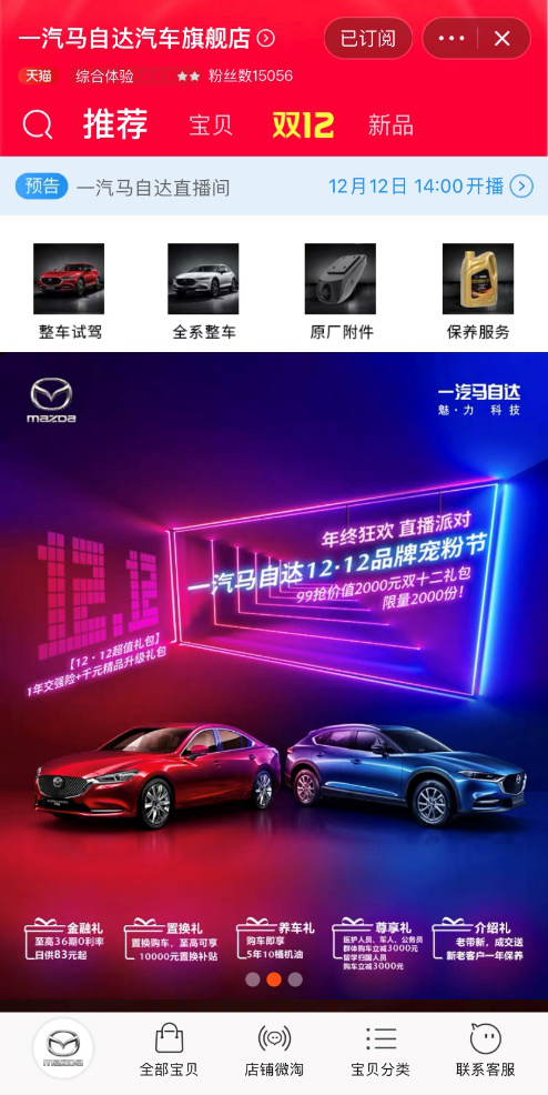或淘宝、淘宝直播APP搜索一汽马自达汽车旗舰店