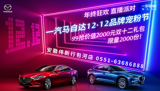 12月12日一汽马自达淘宝直播间,抢千元红包雨福利