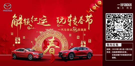 2019年1月1日起,一汽马自达为拼搏的人献上一份新年祝福“品质生活提升计划”全面升级,正式开启新年特别政策,为喜爱阿特兹和CX-4的消费者打造超值购车时机。