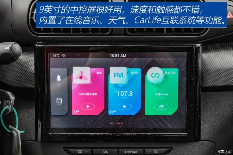 9英寸大屏幕内置的功能十分多,可以提供在线音乐、导航、天气以及CarLife互联系统,并且还支持语音控制,大家可以通过方向盘上的按键进行唤醒,识别率还不错。