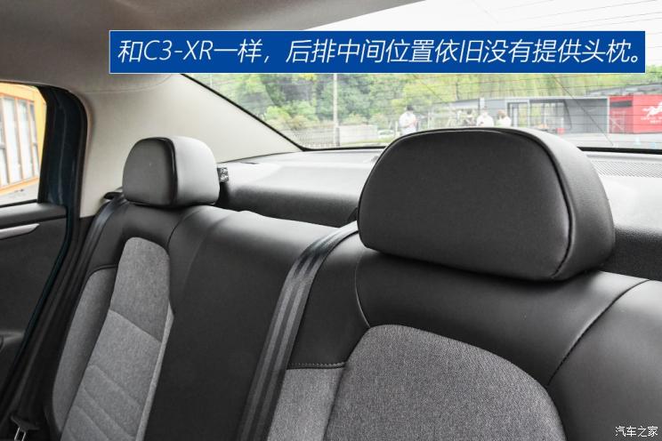 后排的配置比较低,没有配备出风口、电源以及扶手,并且和C3-XR一样,后排中间位置依旧没有配备头枕,中间位置的舒适度有了折扣,接下来咱们继续看看这台车的乘坐、储物空间到底如何。