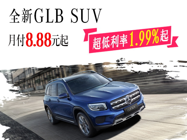 就是那么大才大用。2020年1月1日至3月31日,购买全新GLB SUV可享受多重优惠方案。置换或重购全新GLB SUV,即享每台最高限额3,000元车辆保险支持。另享超低利率1.99%起,日付8.88金融贷款方案!欢迎致电【阜阳伟久奔驰4S中心】网销热线:0558-3770777【1】购车尊享交车礼包 【2】置换送专属礼【3】奔驰金融超低息、低首付等多种贷款方式供您选择!【4】阜阳伟久奔驰可帮您办理临牌、上牌!金牌网销团队全心全意期待您的来电!