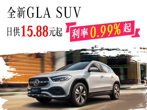 全新GLA SUV 限时购车新方案:“先享后选-星智享”(高首付)方案,日付款/日供人民币16.88元起;可享限额3,000元/台重购置换保险支持;全系车型置换及重购支持,利率0.99%金融贷款方案。欢迎致电【阜阳伟久奔驰4S中心】网销热线:0558-3770777【1】购车尊享交车礼包 【2】置换送专属礼【3】奔驰金融超低息、低首付等多种贷款方式供您选择!【4】阜阳伟久奔驰可帮您办理临牌、上牌!网销团队全心全意期待您的来电!