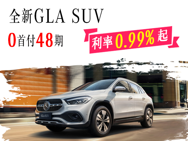 全新GLA SUV 限时购车新方案:全系享5,000元/台重购置换保险支持;“先享后选-星智享”(0首付48期)方案,月付款/月供人民币4,688元起;年利率0.99%起金融贷款方案。欢迎致电【阜阳伟久奔驰4S中心】网销热线:0558-3770777【1】购车尊享交车礼包 【2】置换送专属礼【3】奔驰金融超低息、低首付等多种贷款方式供您选择!【4】阜阳伟久奔驰可帮您办理临牌、上牌!网销团队全心全意期待您的来电!