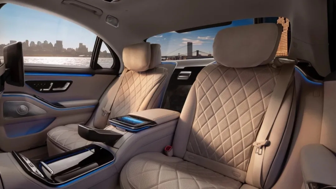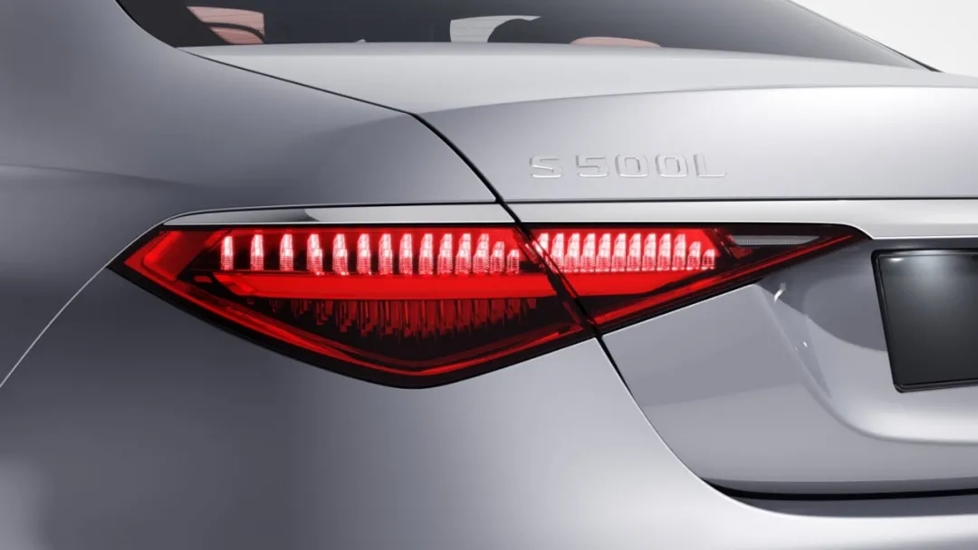 透过光影,遇见“湖光楼影”双段式尾灯,全新梅赛德斯-奔驰S级轿车双段式尾灯水平延展,车灯内精致的矩阵式灯组鳞次栉比,如湖光楼影般熠熠生辉,茫茫车海,一目了然。
