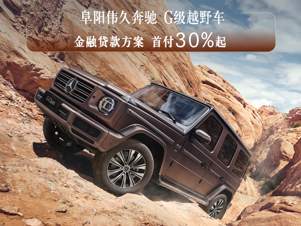 G级越野车金融贷款方案低利率、低首付、低月付,首付30%起。欢迎致电【阜阳伟久奔驰4S中心】网销热线:0558-3770777【1】购车尊享交车礼包 【2】置换送专属礼【3】奔驰金融超低息、低首付等多种贷款方式供您选择!【4】阜阳伟久奔驰可帮您办理临牌、上牌!网销团队全心全意期待您的来电!
