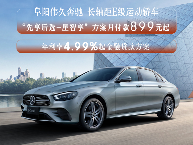 长轴距E级运动轿车 限时购车新方案:可享限额8,000元/台重购置换保险支持;年利率4.99%起金融贷款方案;“先享后选-星智享”方案月付款人民币899元起。欢迎致电【阜阳伟久奔驰4S中心】网销热线:0558-3770777【1】购车尊享交车礼包 【2】置换送专属礼【3】奔驰金融超低息、低首付等多种贷款方式供您选择!【4】阜阳伟久奔驰可帮您办理临牌、上牌!网销团队全心全意期待您的来电!