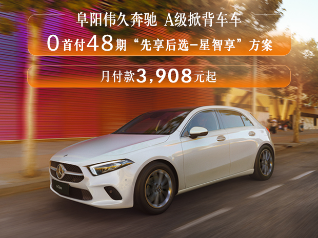 A级掀背车 限时购车新方案:“先享后选-星智享”(0首付48期)方案,月付款人民币3,908元起。欢迎致电【阜阳伟久奔驰4S中心】网销热线:0558-3770777【1】购车尊享交车礼包 【2】置换送专属礼【3】奔驰金融超低息、低首付等多种贷款方式供您选择!【4】阜阳伟久奔驰可帮您办理临牌、上牌!网销团队全心全意期待您的来电!