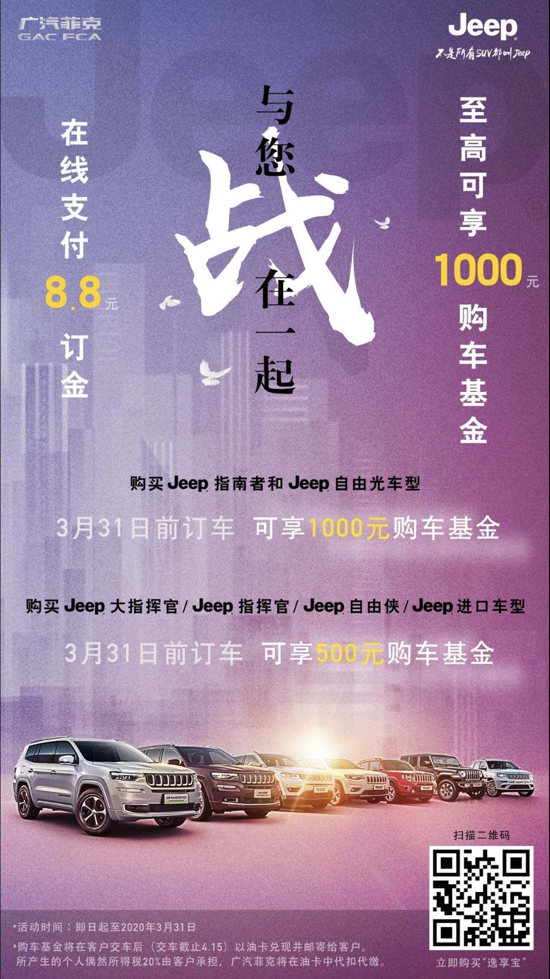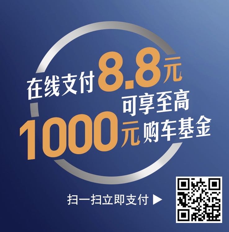 即日起,在线支付8.8元,至高可享1000元购车基金。