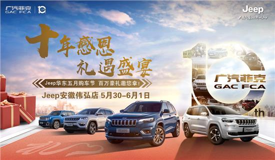 月┆还在等一个买车机会?末┆告诉你,它来了冲┆十年感恩 礼遇盛宴 量┆Jeep华东五月购车节 月末冲量一场前所未有的购车盛“惠”Jeep安徽伟弘店