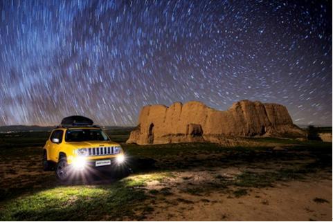 向“星光大道”出发,路过古老的石门,伴随着落日之后的一点微亮,在 Jeep 4X4 SUV智能科技体系的安心守护下前进!