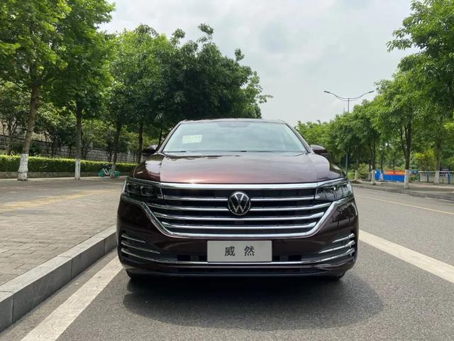 接下来圈哥再带大家来回顾一下威然的颜值。威然的车身尺寸为5346/1976/1781mm,虽然异常的庞大,但不同于市场中常见MPV方正的形象,威然呈现出来的是一股优雅尊贵的气质。前脸采用了尺寸很大的横幅镀铬格栅,并且把车灯连接在一起呈现一体化的视觉效果,真的是相当大气。