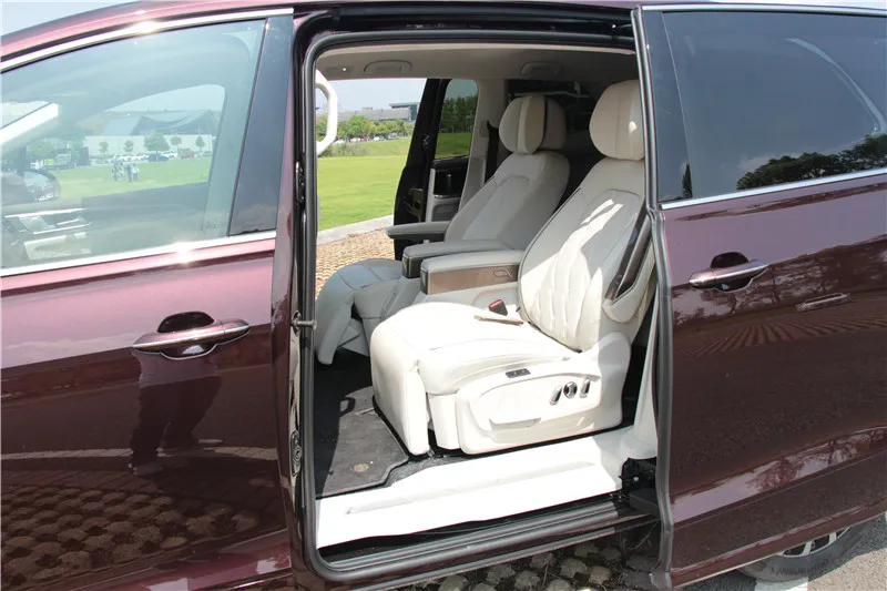 既然是总裁座椅,上下车的姿态则一定要帅。这台车的车门有一键控制开关和手动开关两种方式。此外,在中控台上也有两枚单独控制左右滑门的按钮,进一步提升总裁或女神上下车时的优雅姿态。虽然总裁座椅功能丰富,按键也多,但是有一点让笔者不太理解的是:为什么靠背调节有两个按键呢?除了位于座椅外侧正常位置外,另一个位于扶手靠近身体一侧。也就是说,乘客调节时需要反手操作。这对于身材苗条的人也许能勉强接受,但对于挤在扶手中间的大汉,要在扶手与身体之间完成反手操作就有点强人所难了。另外还有一点,座椅调节的所有开关等都是电子按钮,却唯独座椅前后滑动需要手动调节。对于一台需要经常移动第二排座椅以便第三排乘客上下车的MPV,而且这台多功能座椅本身就比较重,女性面对这种情况该怎么办呢?而且,这可是一台售价40万的顶配车型!