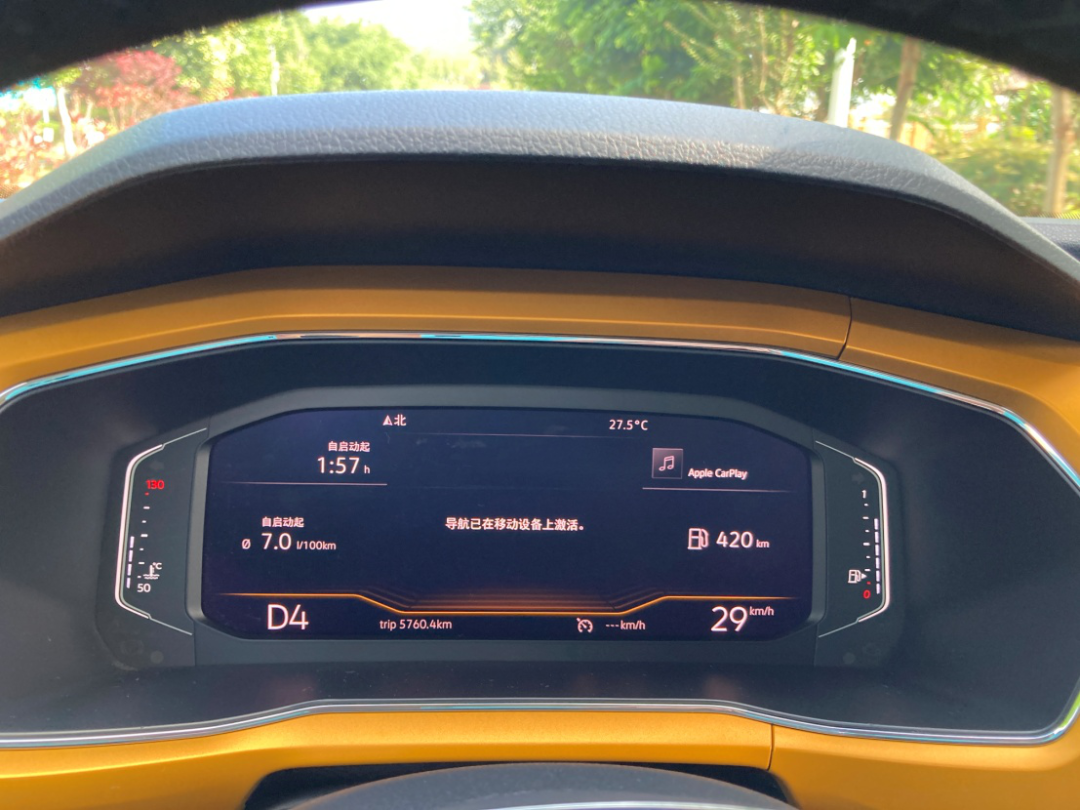 在进入大明山越野路段前,我有意识看了下仪表盘,发现速度为29km/h时、已切换进4档——如此看来,这款发动机和变速箱的匹配,不只是确保动力和顺畅,还可以获得很好的燃油经济性(仪表显示7L油耗,更多是因为停车等待车队拍摄造成)。说到这里,也必须提及大众EA211的ACT“主动气缸管理系统”——在低负载的条件下,1.4TSI转速为1250-4000转;而当扭矩在25-100N.m范围时,2号和3号气缸会被关闭,此时的百公里油耗甚至可以低至0.4L。