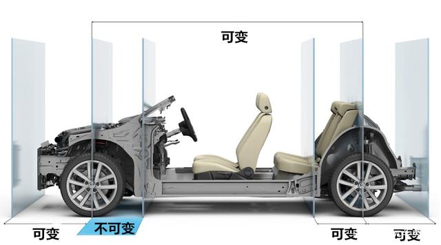 就如上图,蓝色区域文字是固定尺寸,其余都可调节,这也代表着基于此平台生产的汽车零部件通用率高达70%~80%。增加零部件的通用程度,可以有效的减少生产成本,让售后维修更加方便。