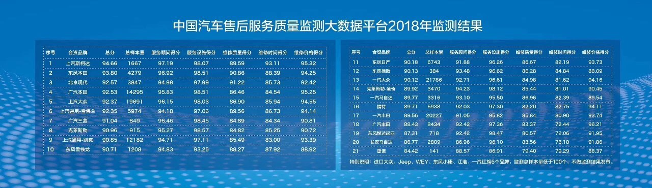 本次发布的“2018互联网+中国汽车售后服务质量消费者体验年度报告”,基于“中国汽车售后服务质量监测大数据平台(CADA云数据)”27万条有效样本,通过服务顾问、服务设施、维修质量、维修时间、维修价格五个维度共71项指标对服务商(包括4S店、社会维修店等)提供的服务进行体验评价。上汽斯柯达凭借在售后领域出众的表现以94.66分的总分在合资品牌组中位列第一。