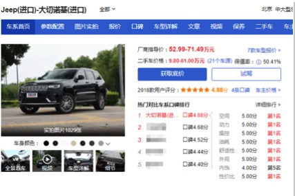 作为Jeep品牌旗舰座驾,进口Jeep大切诺基被视为豪华SUV市场中的技术与工艺榜样级车型。它的全球销量突破520万台①,并于2018年成为北美Top10 SUV畅销榜单中少有的全尺寸豪华SUV②,在汽车之家近期的中大型SUV口碑排行榜上,以4.88的综合评分成绩雄踞前列。