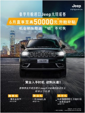 难得的是,6月入手进口Jeep大切诺基可享至高5万置换补贴政策,更有多种0利率金融方案可供选择。赶紧行动吧!