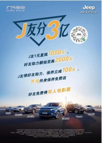 7.26-7.31,J友分3亿,助力只差你!进入下图小程序,让好友一键“打榜”,赢取各类福利——100元厂家保养补贴、2000元厂家购车红包、好友送你上顶流,万元保养券!到店更有月底冲量特惠,限时最后一周!超低首付、至高36期0利率、丰富购车礼等福利助您在7月轻松升舱,老车主邀亲友到店看车及购车更享“老带新”专属好礼!更多详情Jeep六安伟驰邀您到店详询!Jeep助力热线:0564-3362222