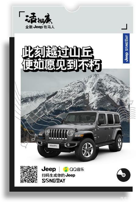 出发吧,游走于车水马龙,再闯入未知的自然,与跳动的音符作伴,肆意追风、追光、追星、追逐内心的BGM。用全新牧马人的方式听见爱,用牧马人的方式活彻底。扫码互动生成你的专属歌词海报,更有机会参与全新Jeep牧马人年底派对——旅行团乐队Live空降,更有机会获得QQ音乐绿钻会员资。年底选指定金融产品享至高6000元Mopar官方精品配件现金券,即刻把这款全球偶像级SUV全新Jeep牧马人DAI回家!