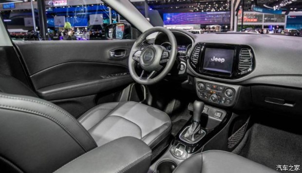 全新Jeep指南者夜鹰版的内饰,以黑色为主基调的车舱,
