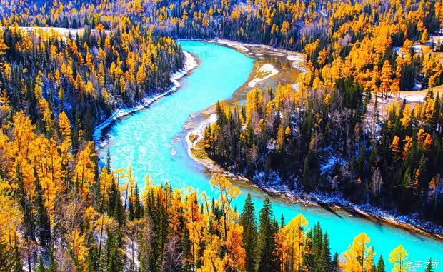 秋天的喀纳斯天高云淡,蓝天如洗,层林尽染,满目流金,