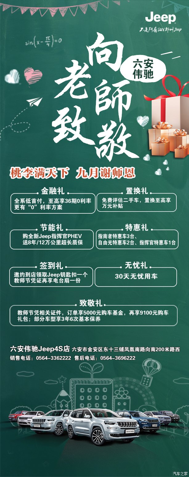 即日起到9月30日,老师及直系亲属购车享5000元补贴,再享9100元大礼包。