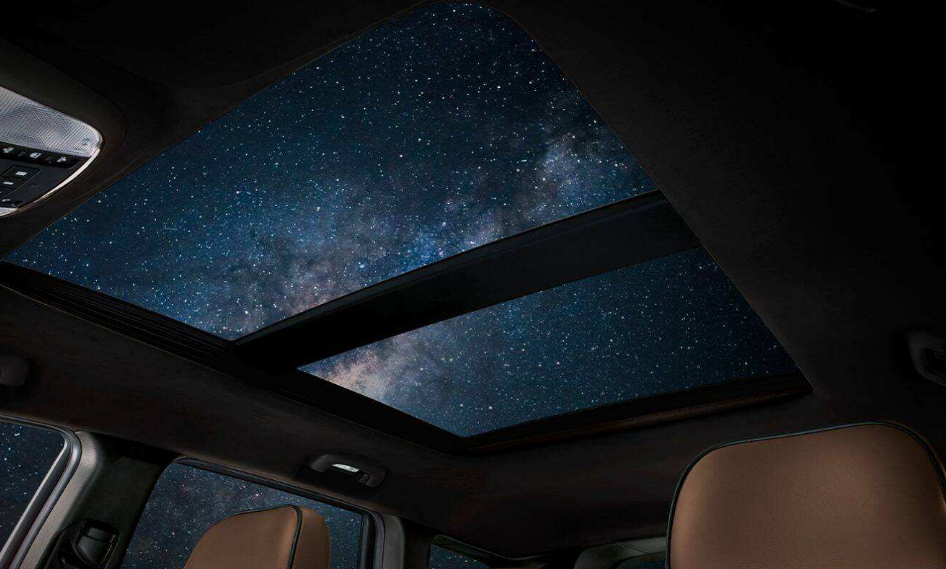 坐在Jeep大切诺基里,打开电动全景天窗,