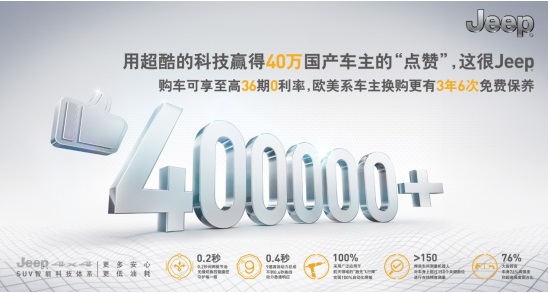 4)全系专属金融礼,换购送保养:Jeep全系在售车型首付2万元起、日供15元起,至高享36期0利率;欧美系车主换购国产Jeep车型享3年6次免费保养。