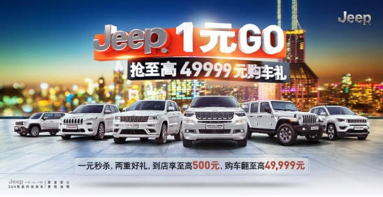 “Jeep 1元GO”返场嗨,这次错过只能再等一年!1元秒杀赢两重好礼,款款福利总有一款心仪!“Jeep 1元GO车节” 更多惊喜礼遇,六安伟驰邀您到店咨询!GO车热线:0564-3362222