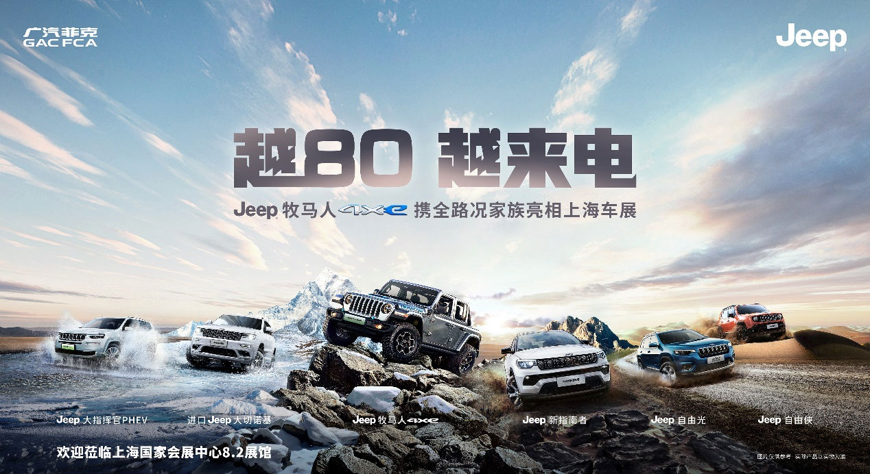 Jeep大切诺基80周年纪念版,Jeep新指南者越野改装版“Off-Roader”和Jeep牧马人4xe Off-Roader,领衔Jeep品牌全系车型登陆,实力演绎“越80,越来电”。