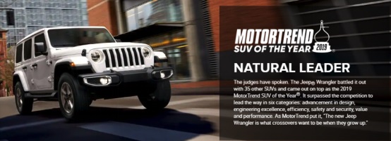 此外,Jeep牧马人还获评2019凯利蓝皮书 “十大高保值车型”,并在四驱性能SUV门类中排名TOP ONE