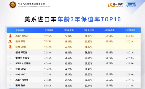 (数据来源:https://www.kbb.com/new-cars/best-resale-value-awards/best-resale-top-10-cars/)。这已是其连续第9年获评该奖项。而Jeep牧马人的国内保值率表现也毫不逊色,2018年中国汽车保值率研究委员会发布的《中国汽车保值率报告》“美系进口车车龄3年保值率TOP TEN”榜单中,Jeep牧马人位居TOP ONE。