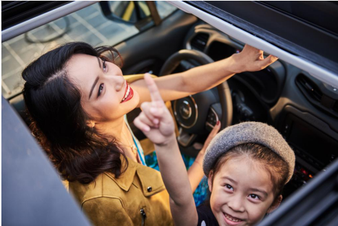 打开Jeep自由侠同级超大全景天窗和同级鲜有的My Sky ?可拆卸电动开启敞篷式车顶,让孩子看辽阔天空、缤纷美景。孩子脸上展露纯真笑容,一定是母亲莫大的欣慰!