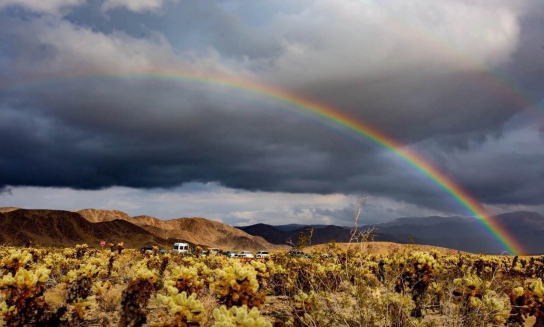 虽然烦人的风暴一再扫兴,几乎每隔不到半小时总要因为躲雨而回到车上,但是俗话说得好,塞翁失马焉知非福?本次旅途之中的第一条Double Rainbow 就在这种让人无比沮丧的天气之中,突然呈现在了仙人掌花园不远处的天上,幸福感瞬间爆棚。