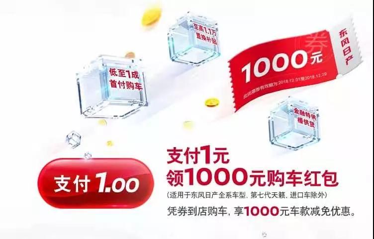 1元抵1000元(适用于东风日产全系车型,第七代天籁、进口车除外)