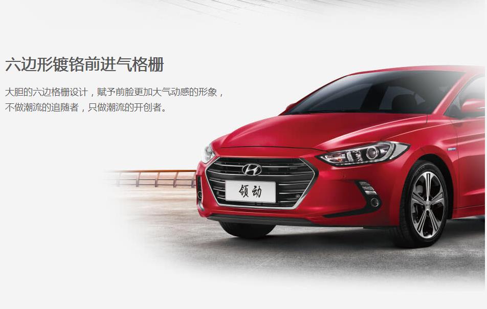 北京现代领动采用现代最新的流体雕塑2.0设计理念,整体造型犀利动感,六边形的进气格栅及L形的雾灯区设计将车头烘托出极强的视觉冲击感。