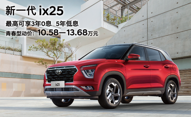 新一代ix25定位于小型SUV,新车从外观、空间、油耗、智能、安全五大方面进行焕新升级。外观上,新车整体风格语言偏向于年轻,并以线条来突出运动化属性。具体来看,分体式LED前大灯、单色/双拼色车身、悬浮式车顶、小幅溜背造型、鲜明的侧部腰线、五幅炫酷轮毂、贯穿式设计尾灯等外观设计均有所涉及。在车身尺寸上,新车的长宽高分别为4300/1790/1620(1635)mm,轴距为2610mm。内饰上,新车采用了科技式座舱布局,其科技感将由飞航式换挡杆、12.3英寸数字仪表、10.4英寸立式悬浮中控屏来呈现。在细节方面,新车的空调出风口、无线充电格、门板音响等均采用了风格统一的中国纹元素。同时,新车还搭载了1146mmx719mm采光面积全景天窗,并搭配电动遮阳帘。为便利用车,新车可实现无钥匙进入、一键启动以及空气净化等功能。在内部空间上,新车的后备箱容积为444L。智能配置上,新车首次搭载了百度智能网联3.0系统,该系统可实现多项语音控制功能,以及实现低油量提醒/联动导航、旅途规划/油量先行、导航联动/信息互通等智能应用。在智能安全方面,新车搭载了Hyundai Smart Sense“智心合一”安全系统,据悉,该系统可集成10项行车驾驶辅助系统(ADAS)功能。