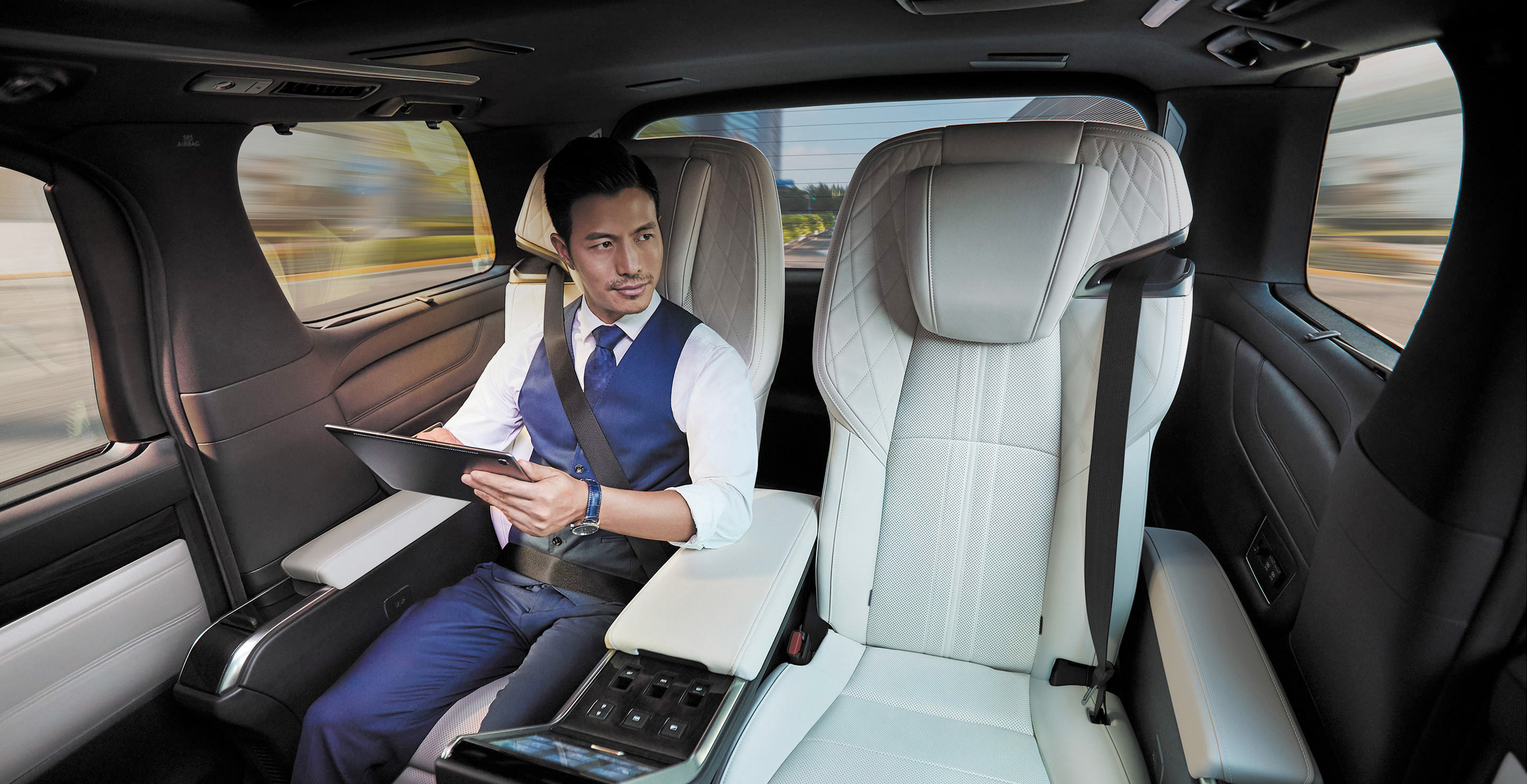 心容天地,尊崇礼遇;自处时,超然而淡泊;共处时,律己而包容。全新LM,以宽博奢适的格局空间,呈现豪华MPV旗舰风范。
